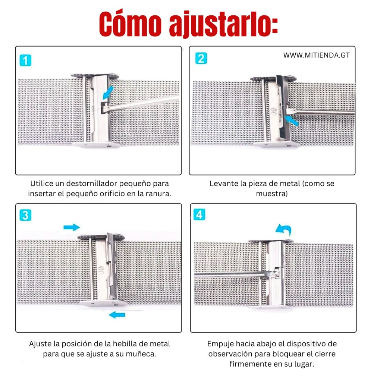 Correa milanesa de acero inoxidable: Fabricada con acero inoxidable duradero, la correa milanesa ofrece un ajuste elegante y antideslizante para estilos de vida activos.